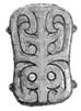在这次展览中,最精美的文物是一件发现于二里头的绿松石铜牌。绿松石铜牌最早见于甘肃、河南与四川,是玉石工艺和冶金技术巧妙结合的产物,标志着东西方金玉文化的结缘。二里头的嵌绿松石兽面纹铜牌,是一种极具二里头文化特色的艺术品,以青铜铸出的圆角凹腰状的牌体正面弧凸,其上铸出兽面纹。目前已出土了3件,都是贵族墓的随葬品。这类器物一般出土于墓主人的胸腹部附近,两侧各有两个穿孔的纽,或许是缝于衣服上的。这样的兽面纹与商代的青铜器上的龙纹十分相似。