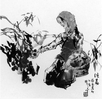 谢志高是多面手,他能画大品,也能作小品;擅长独幅创作,也精于插图和连环画;农民、工人、市民和少数民族各种类型的人物画形象驾驭自如。他创作大品即主题性绘画的态度严肃认真,一丝不苟;同样,画小品时也决不敷衍、应付。读他的许多小品人物画,我们不得不佩服他过硬的造型本领和精妙的笔墨趣味,不得不感叹他把握画面整体性的能力,也不得不暗暗赞叹他避免小品画面的彼此雷同而显示出来的独具匠心。