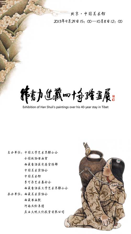 9月29日,《韩书力进藏40年绘画展》在北京中国美术馆隆重拉开帷幕。此次绘画展由中国文联、全国政协书画室、西藏自治区党委宣传部、中国美协、中国美术馆、李可染艺术基金会、西藏文联主办,西藏美协、西藏书画院、中国天伦集团、庆云大观文化投资有限公司承办。在10天的展期内,展出近百幅题材各异的精品画作。